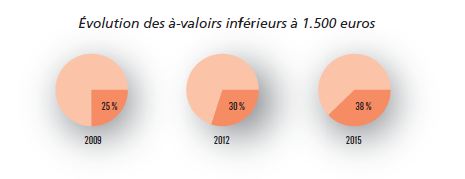 Aujourd’hui, 38% des auteurs concernés par un à-valoir ont perçu pour leur dernier contrat un à-valoir inférieur à 1.500 euros et 28% d’entre eux, un à-valoir supérieur à 3.000 euros.