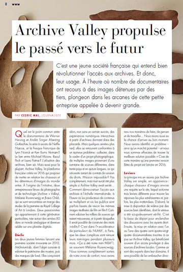 C’est une jeune société française qui entend bien révolutionner l’accès aux archives. Et donc, leur usage. À l’heure où nombre de documentaires ont recours à des images détenues par des tiers, plongeon dans les arcanes de cette petite entreprise appelée à devenir grande. Un article du journaliste Cédric Mal pour la lettre Astérisque n°62.