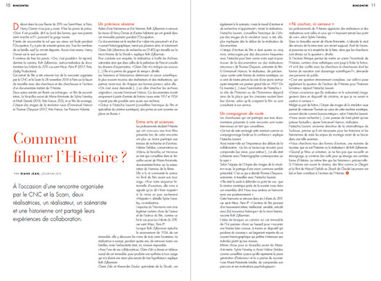 Il continue de fixer les pavés. « Oui, c’est possible », lui répond, derrière la caméra, Ruth Zylberman, autrice-réalisatice du documentaire Les Enfants du 209, rue saint Maur, Paris Xe (2017, Arte, Zadig Productions). Cet extrait du film a été visionné lors de la rencontre organisée par le CNC et la Scam le 28 novembre 2018 à Paris sur la façon de travailler avec des chercheurs et des chercheuses à l’écriture d’un documentaire traitant de l’Histoire. Deux autres extraits ont illustré ces échanges : un film de reconstitution, Le Versailles secret de Marie-Antoinette de Sylvie Faiveley et Mark Daniels (2018, Arte France, ZED), et un film de montage, L’Utopie des images de la révolution russe d’Emmanuel Hamon et Thomas Cheysson (2017, Arte France, Les Poissons Volants).