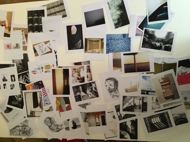 J’aime travailler en posant sur la table toutes ces inspirations, ces objets, ces lieux, ces souvenirs, ces mots-clés, en les faisant se rencontrer, grincer, s’accoupler et tout à coup faire sens.