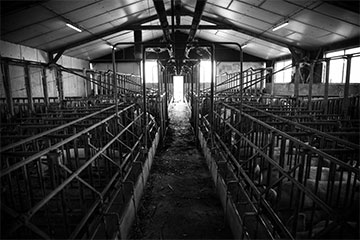 L’idée centrale dans les pratiques intensives est d’accélérer fortement le temps des différentes phases productives et donc de forcer l’animal à s’adapter à ce rythme. Quelles peuvent être les conséquences d’un tel rapport forcé, comment se vit cette situation pour des animaux regroupés sur des petits espaces dans un environnement sonore et visuel hors de leur cadre de compréhension naturel ? Au travers de l’installation cross-media immersive Dans le souffle de la bête, il est proposé ici de questionner l’importance du respect de la temporalité de vie d’animaux d’élevage.