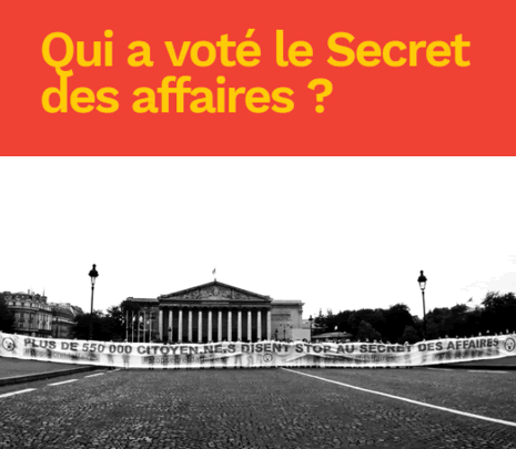 Malgré les alertes lancées depuis près de 3 mois par une coalition rassemblant 52 organisations (syndicats et ONG) et l’essentiel des Sociétés de Journalistes, malgré la pétition signée par plus de 560 000 personnes, Raphael Gauvain et Emmanuel Macron ont refusé de modifier la proposition de loi. La coalition avait pourtant une demande simple : limiter le champ d’application du secret des affaires aux seuls acteurs économiques concurrentiels.