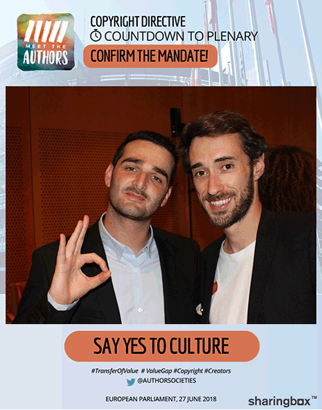 Dans le cadre d’une rencontre organisée par le Gesac avec les parlementaires européens mercredi 27 juin, Ludovic Bassal et Jonathan Semah (« Le Tatou »), vidéastes sur Youtube, adhérents à la Scam, ont défendu la directive sur le droit d’auteur aux côtés d’auteurs, d’autrices et d’artistes de tous les domaines de la création.