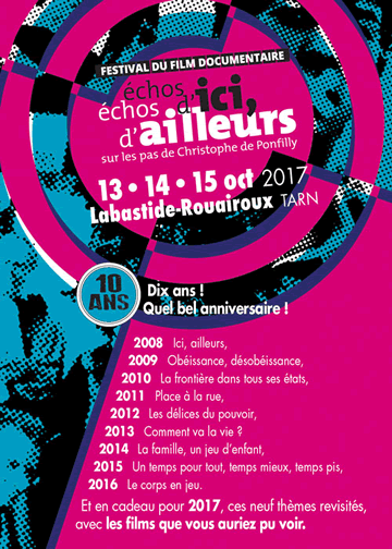 Sur les pas de Christophe de Ponfilly, et avec le soutien de la Scam, Échos d’ici, Échos d’ailleurs a choisi le cinéma du réel pour s'interroger sur les diversités, comprendre les marges et fouiller la société ; un hommage à cet éclairé disparu il y a onze ans qui avait l’habitude de venir de se reposer des injustices du monde dans cette Montagne Noire.