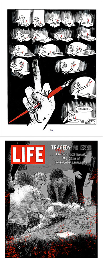 « Il y a le souvenir, il y a la mémoire. Restent des traces. Il y a les tâches. Qui reviennent au bout des doigts. Il y a les amis. Au coin d’une pensée qui, tant mieux, ne s’efface pas. Il y a le journal. À moins que Charlie Hebdo n’ait été bien plus que quelques feuilles de papiers. (…) On commence, on monte à Paris, on n’est qu’un brouillon de soi-même. Une page à noircir. On rencontre des gens, des talents, des parents. Dessiner, putain, quel beau métier ! Y’a pas moyen : ça part pas. Eux non plus. Indélébiles. » Luz