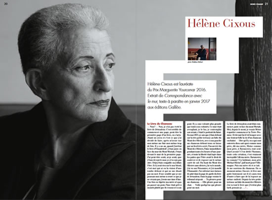 Hélène Cixous est lauréate du Prix Marguerite Yourcenar 2016. Extrait de Correspondance avec le mur, texte à paraître en janvier 2017 aux éditions Galilée.
