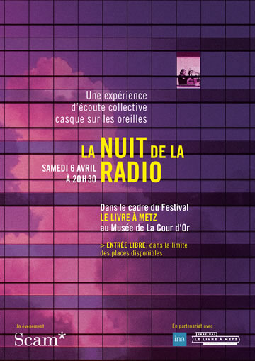 La Nuit de la Radio 2018 arrive au Livre à Metz après s’être promenée à Paris, à Marseille (dans le cadre du FIDMarseille), à Autun (dans le cadre des Rendez-vous de Juillet), à Lussas (aux Etats généraux du documentaire) et au Panthéon (dans le cadre de Paris en toutes lettres) et à Brest (dans le cadre de Longueur d’ondes).