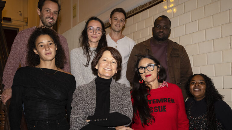 (En photo) Anja Unger, présidente de La Scam, entourée des 5 IDFAcadémicien.nes