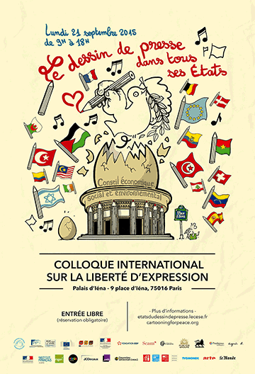 Né de la réflexion du philosophe Régis Debray et du dessinateur Plantu – Président de Cartooning for Peace -, le colloque « Le dessin de presse dans tous ses États » convie, l’espace d’une journée, des dessinateurs de presse du monde entier ainsi que des intellectuels, universitaires, théologiens, représentants du monde politique, culturel et de la société civile à prendre part à ce débat public, au Conseil économique social et environnemental, 3ème assemblée de la République.