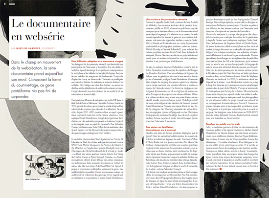 Dans le champ en mouvement de la webcréation, la série documentaire prend aujourd’hui son envol. Consacrant la forme du court-métrage, ce genre protéiforme n’a pas fini de surprendre. Un article de la journaliste Laureline Amanieux, pour la lettre Astérisque n°61.