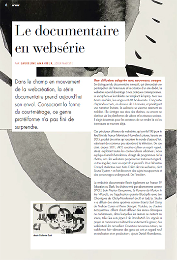 Dans le champ en mouvement de la webcréation, la série documentaire prend aujourd’hui son envol. Consacrant la forme du court-métrage, ce genre protéiforme n’a pas fini de surprendre. Un article de la journaliste Laureline Amanieux, pour la lettre Astérisque n°61.