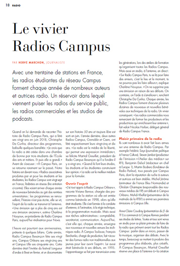 Avec une trentaine de stations en France, les radios étudiantes du réseau Campus forment chaque année de nombreux auteurs et autrices radio. Un réservoir dans lequel viennent puiser les radios du service public, les radios commerciales et les studios de podcasts. Un article du journaliste Hervé Marchon, pour la lettre Astérisque n°63.