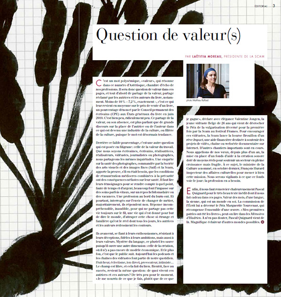 L »édito de Laëtitia Moreau, présidente de la Scam
