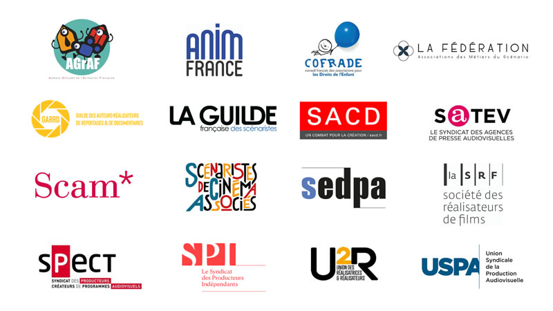 Les signataires : l’AGrAF, AnimFrance, le Cofrade, la Fédération des Métiers du Scénario, la GARRD, la Guilde des Scénaristes, la SACD, le SATEV, la SCAM, SCA, le SEDPA, la SRF, le SPECT, le SPI, l’U2R, l’USPA