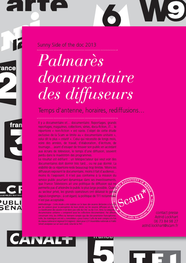 Temps d’antenne, horaires, rediffusions… La Scam a dévoilé au Sunny Side of the Doc 2013, son étude sur la place du documentaire à la TV. Un état des lieux de la politique éditoriale des chaînes sous forme de palmarès thématique.