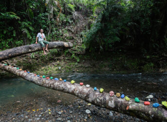 Ainsi fut décelé, saisi et magnifié au grand angle le sculpteur mauritanien Oumar Ball, au milieu de ses oiseaux tressés de fer, tels des grillages qui prendraient vie pour s’envoler en s’émancipant et s’émanciper en s’envolant. Ainsi fut mis au jour l’artiste visuel et performeur papouasien Jeffrey Feeger, qui, en l’absence de galerie, expose sur un tronc d’arbre enjambant une rivière sa série de cailloux aux couleurs vives, à la manière d’un Petit Poucet qui jamais ne désespère d’être abandonné à son sort de démiurge vulnérable et laissé-pour-compte.