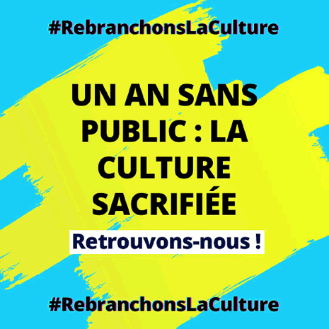 Les professionnels de la culture se mobilisent à l’approche d’un bien triste anniversaire. #RebranchonsLaCulture